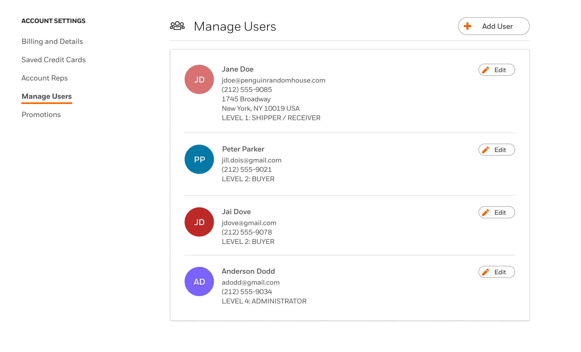 - Level 4 (Administrator): This access is the same as Level 3, except that this type of user can manage other users associated with the account. There can be multiple administrators for an account. Permission to access all store accounts.